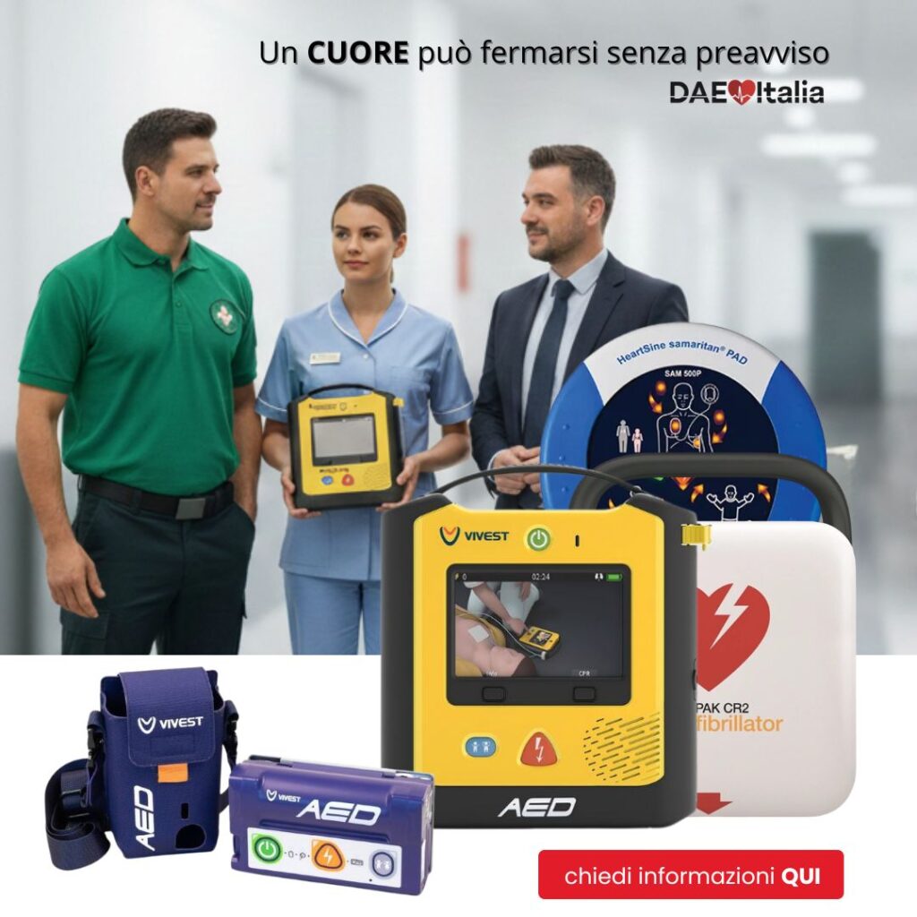 Pubblicato su Proloco PaglietaTrustindex verifica che la fonte originale della recensione sia Facebook. Abbiamo appena ricevuto il defibrillatore che domenica doneremo alla nostra locale amministrazione e verrà installato al campo sportivo a disposizione degli atleti e della cittadinanza. Abbiamo ricevuto piena assistenza con massima serietà per un prodotto TOP. Grazie! consigliamo tutti DAE Italia!!Pubblicato su Stefania DamianiTrustindex verifica che la fonte originale della recensione sia Facebook. DAE Italia é una garanzia in tutti i sensi. Siamo stati seguiti passo per passo, abbiamo acquistato il nostro defibrillatore e finalmente la nostra associazione è cardioprotetta! Dopo l’acquisto dalle attenzioni Maria si passa a quelle di Antonella. Lo consiglio a tutti! Grazie DAE Italia!❤️Pubblicato su Il Cammino dell'EroeTrustindex verifica che la fonte originale della recensione sia Facebook. DAE, ho avuto il piacere di acquistare il defibrillatore dove il personale ha dato tutto il supporto per scegliere il prodotto più idoneo. Tempestivo il tempo di consegna. Consiglierei a chi mi chiede il loro servizio e i loro prodottiPubblicato su Franco SpallassoTrustindex verifica che la fonte originale della recensione sia Facebook. professionali e sempre disponibili cosa non da poco al giorno d oggi consiglio a tutti DAEPubblicato su Ivano GuadagnoTrustindex verifica che la fonte originale della recensione sia Facebook. Ho recentemente acquistato un terzo defibrillatore e sono rimasto davvero soddisfatto dell’investimento. Il DAE offre un utilizzo semplice e immediato, con istruzioni chiare passo-passo che rendono l’intervento possibile anche per chi non è un esperto. L’innovativo design compatto e leggero lo rende facile da posizionare in ambienti domestici, uffici o studio Medico come il mio , senza occupare troppo spazio. La qualità dei materiali e la robustezza dell’apparecchio e sopratturro la durata della batteria (7 anni ) danno una sensazione di affidabilità, fondamentale in situazioni di emergenza che oggi sono dietro l'angolo, Inoltre, la funzione di guida vocale contribuiscono a ridurre lo stress e il panico durante l’utilizzo, favorendo una risposta rapida e efficace. Il servizio clienti è stato impeccabile: consegna rapida, help desk disponibile e disponibilità a fornire formazione pratica o dimostrazioni. Nel complesso, l’acquisto si è rivelato una scelta responsabile e preziosa, aumentando la sicurezza del mio luogo di lavoro offrendo serenità ai miei pazienti e chi mi sta vicino. Vorrei ringraziare la Responsabile Antonella Acri che è stata molto disponibile per i servizi offerti e tutti i chiarimenti esaustivi. Dott. Ivano GuadagnoPubblicato su Daniele Di PaloTrustindex verifica che la fonte originale della recensione sia Facebook. Abbiamo acquistato da poco un defibrillatore per la nostra azienda, il servizio è stato perfetto, personale competente pronto a rispondere ad ogni mia domanda o dubbio. Un grazie speciale a Maria e Antonella.Pubblicato su Daniela CeschinaTrustindex verifica che la fonte originale della recensione sia Facebook. Ho acquistato questo defibrillatore per la mia scuola di danza. Il dispositivo è intuitivo, facile da usare anche per chi non ha esperienza medica, e viene fornito con istruzioni chiare e accessori completi. La consegna è stata puntuale e l'assistenza clienti molto disponibile nel rispondere ai mie dubbi pre-acquisto. Avere un DAE a disposizione dà una grande tranquillità, soprattutto in ambienti frequentati da molte persone. Un investimento importante per la sicurezza, che ogni realtà dovrebbe considerare. Consigliatissimo!Pubblicato su Francesco de StefanoTrustindex verifica che la fonte originale della recensione sia Facebook. ⭐⭐⭐⭐⭐ Ho recentemente acquistato un defibrillatore da questa azienda e non posso che esprimere la mia piena soddisfazione. Il servizio è stato impeccabile: personale competente, disponibile e pronto a rispondere a ogni mia domanda con professionalità e cortesia. La spedizione è stata rapida e il prodotto è arrivato perfettamente imballato, completo di tutte le certificazioni e istruzioni d’uso. Il defibrillatore è di alta qualità, semplice da utilizzare e conforme alle normative vigenti. Un grazie speciale al team per l’assistenza post-vendita, sempre presente e attento. Consiglio vivamente questa azienda a chiunque cerchi affidabilità, sicurezza e serietà in un settore così delicato. Complimenti!Pubblicato su Biagio CirimeleTrustindex verifica che la fonte originale della recensione sia Facebook. Azienda di riferimento per chi opera nel mondo del salvamento. Professionalità e serietà alla base del successo. Prodotti di qualità ottima. Ho acquistato recentemente un Kit Defibrillatore semiautomatico - PowerBeat X1 VIVEST modalità adulto e pediatrico,per l'installazione presso lo stabilimento balneare di cui sono il titolare. Ho scelto Dae Italia perché mi hanno trasmesso fiducia e serietà.Pubblicato su Vincenzo FormicaTrustindex verifica che la fonte originale della recensione sia Facebook. personale molto disponibile e gentile. La professionalità ci ha portato a scegliere DAE Italia.